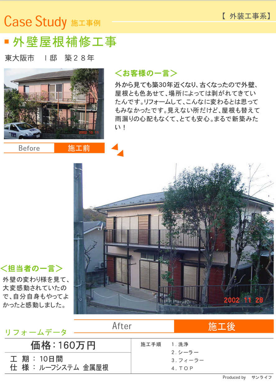 外から見ても築30年近くなり、古くなったので外壁、屋根とも色あせて、場所によっては剥がれてきていたんです。